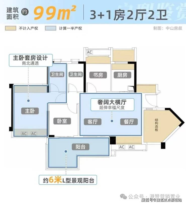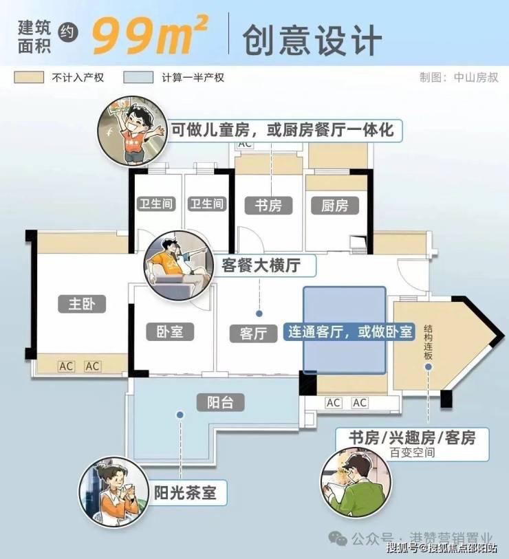 建面约99㎡实用率107%,空间可拓展3+2房,三胎时代刚改置业一步到位!