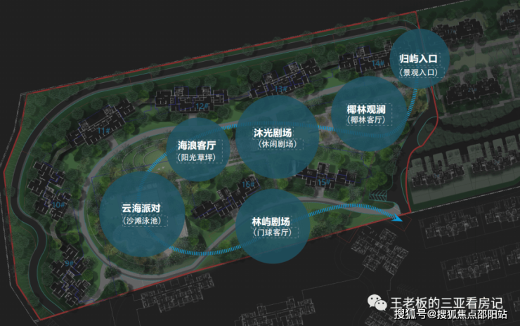 以“林屿” 为主线贯穿园林始终,结合度假生活的需求和海岛的居住文化、自然资源景观等,园林八大主题空间串联,包括椰林嘉观澜,沐光剧场、海浪客厅等场景交织,兼顾功能性和美观性,为湾区园林生活树立一个新标准。
