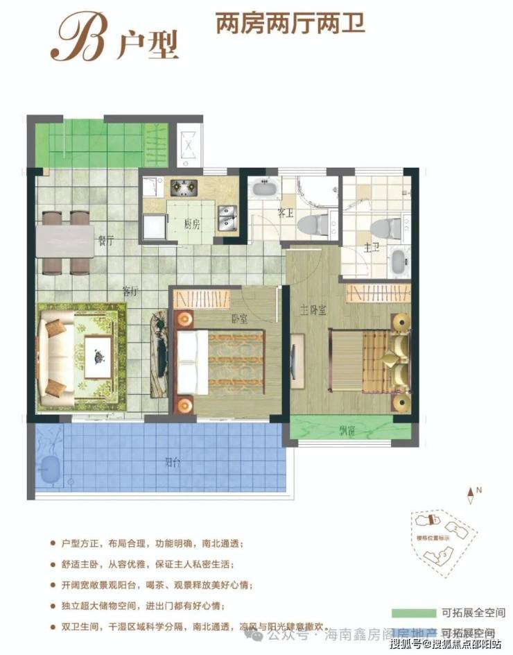 B户型:81.73㎡-84.91㎡两房两厅两卫
