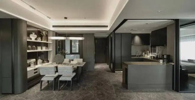 样板间将客厅与客卧打通成近50㎡的大方厅,空间十分阔绰,由于该户型的实用率高,且几乎没有走廊造成空间的浪费,室内的观感足以媲美市面上的130㎡户型,不会有哪个空间显得特别狭小。