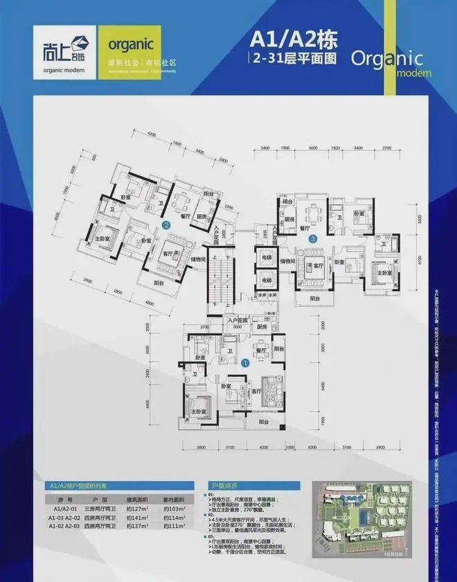 A区(一期,2013年收楼):商铺+洋房+别墅组合,共7栋楼,临街底层1-3楼为商业街。其中4栋属于高楼层住宅,共为29楼,两梯6户或2梯10户。主推中小户型,面积为56-77㎡米之间, 但空间实用率偏低。103-120㎡三房户型最为实用。四房或以上大户型房源数量不多。