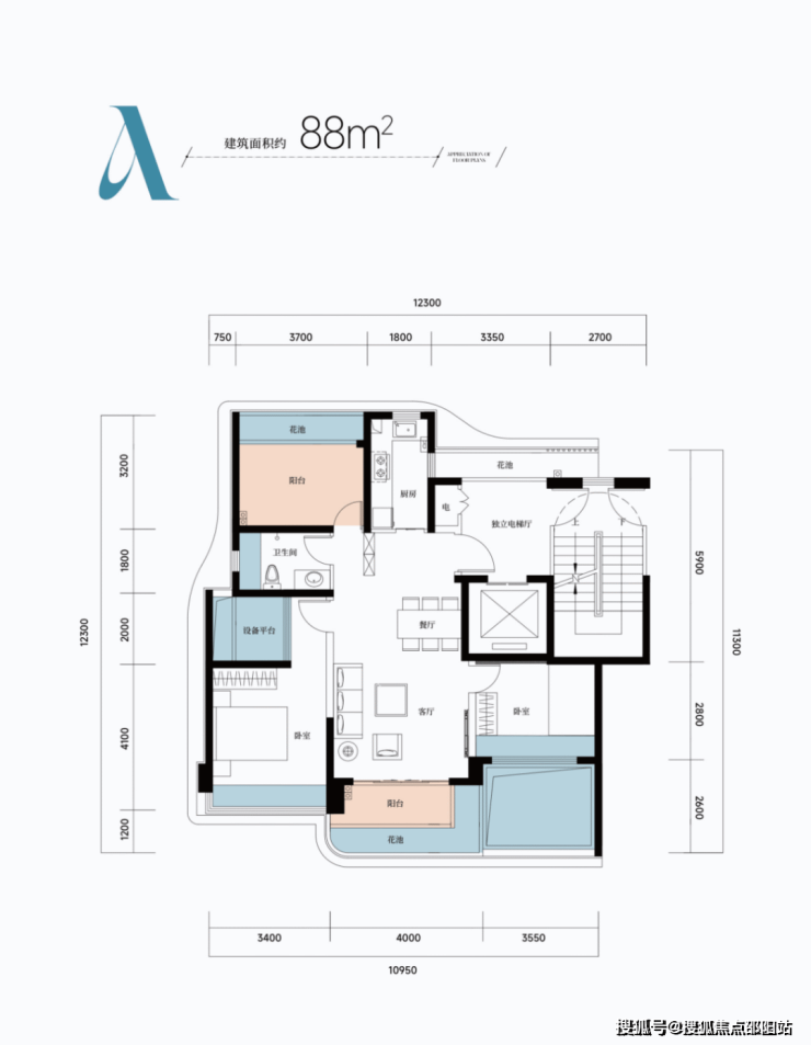 A户型:建面约88㎡