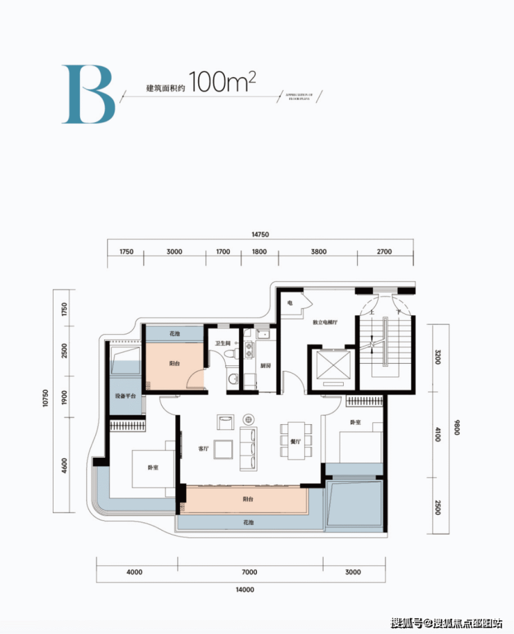 B户型:建面约100㎡