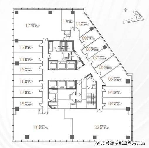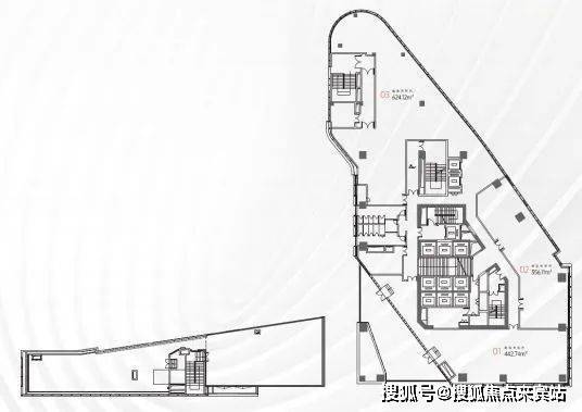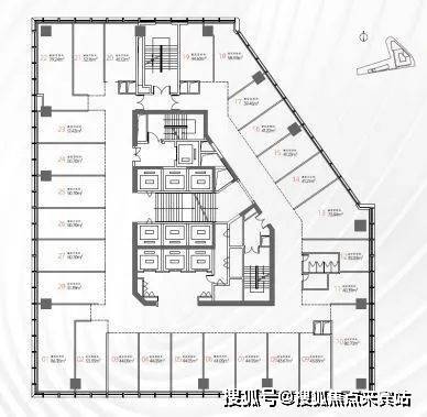 ① 办公:位于17-36层,整体面积约27767.36㎡,单层面积约1460㎡,标准层高4.2米