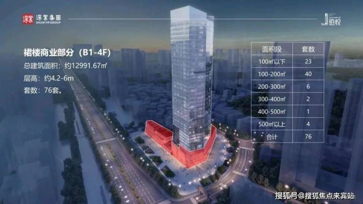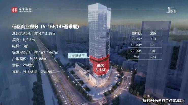 ② 塔楼商业:位于5-16层,整体面积约14793.5㎡,按套分证,标准层高3.3米
