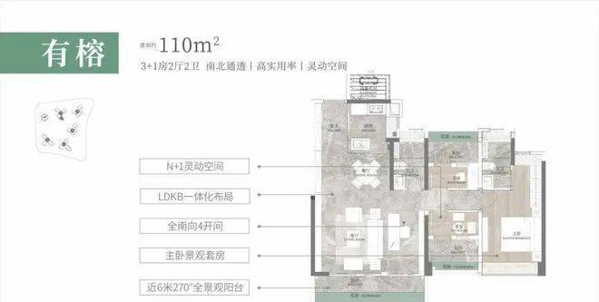建面约110㎡,南向阳台近6米,显得很阔气,270°视野,更是难得,LDKB一体化设计,形成一个阔绰的方厅,
