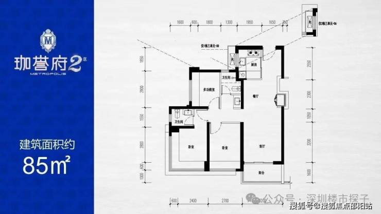 建面约75-76㎡三房一卫;约85-86-87-94-95-96㎡三房两卫,约105-120㎡四房两卫;