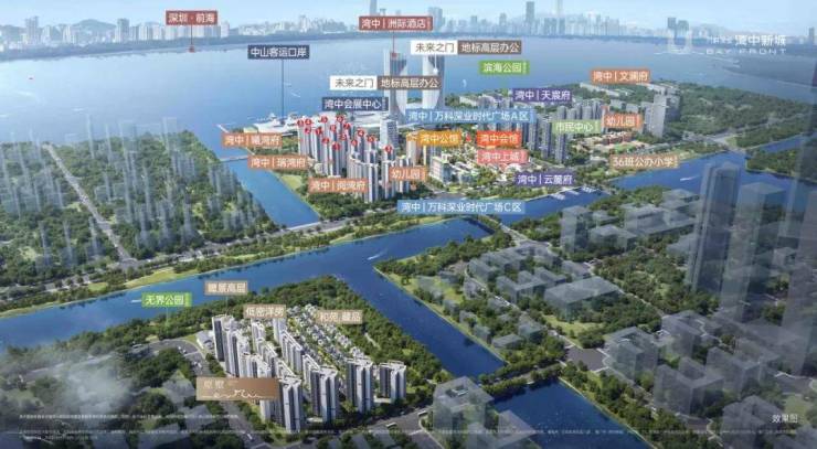 湾中新城地段确实得天独厚,就在大湾区的风口——黄金内湾之上,毗邻深中通道落脚点。