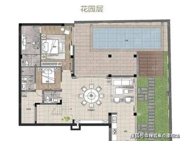 别墅户型花园层三房三厅一厨五卫建筑面积为155㎡