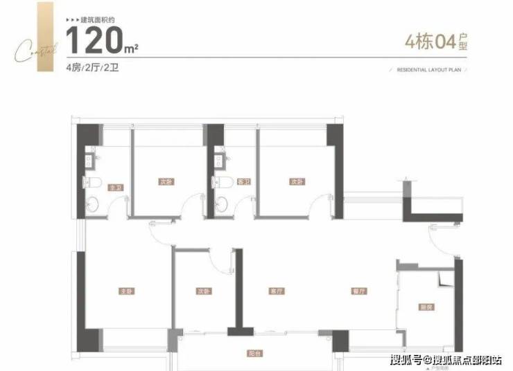01-04户型100平3房2,05-06户型120平4房2卫,4梯6户,层高3.1米。