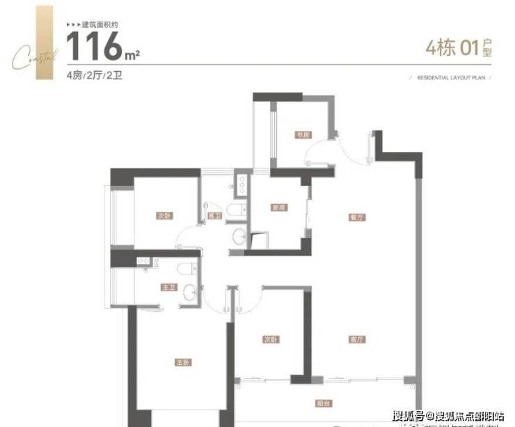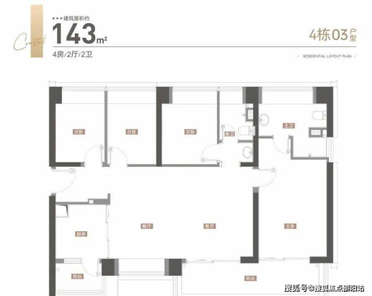 01-02户型116平3房2卫,03、05户型142平4房2卫,04户型120平3房2卫,4梯5户,层高3.1米;