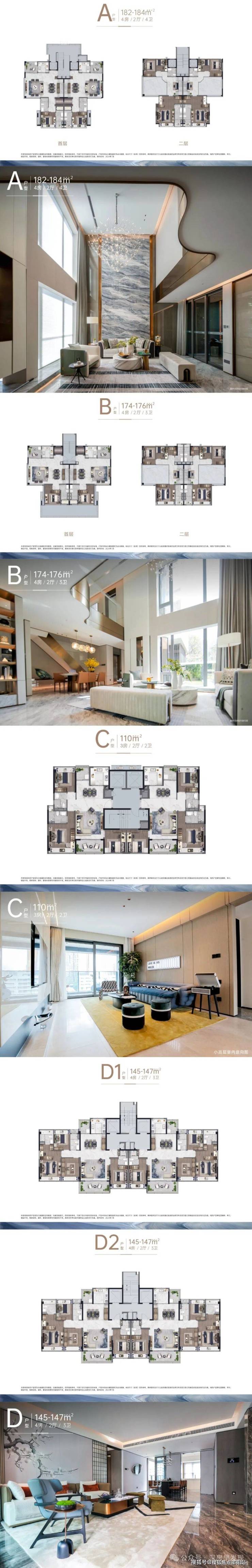 约12-16层纯板楼小高层,建面约110-147㎡通透3-4房,两梯两户,宽景阔宅,尊崇奢适。
