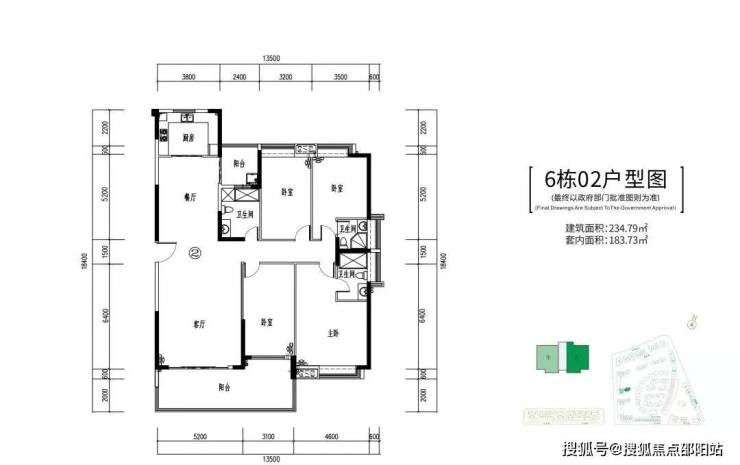 6栋:2-24层、两梯两户,219-234㎡四房