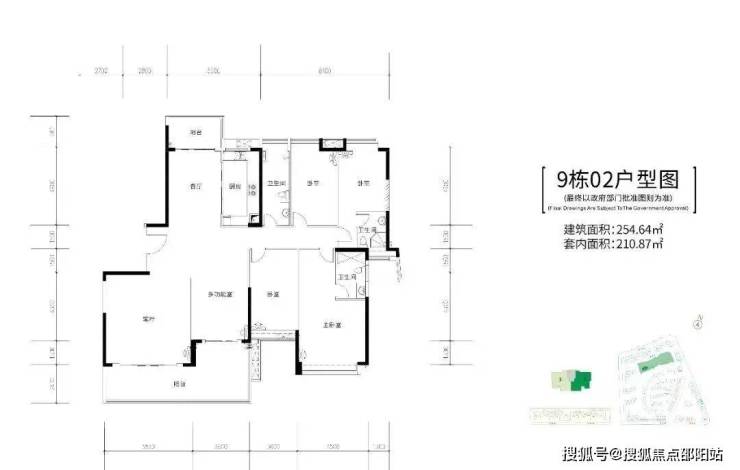 9栋,两梯两户,建面约255-259㎡五房大平层户型