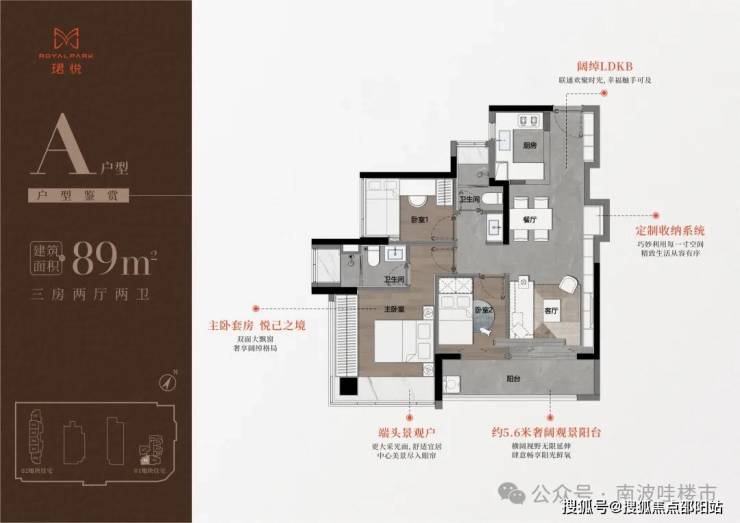 A户型:大阳台,主卧通过凸窗赠送衣柜,但次卧尺度都偏小,越过家居建材市场看向中粮大悦城写字楼,视野开阔