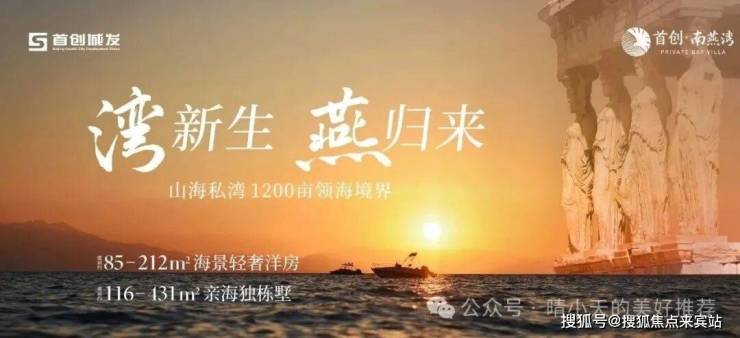 首创南燕湾,背山面海,聚纳万千气象。总占地约1200亩山海大境,总建面约27万㎡,整体容积率约0.5,营造低密私湾墅区,集奢华度假酒店、亲海独栋别墅、海景洋房、主题精品酒店及湾流荟社群于一体。
