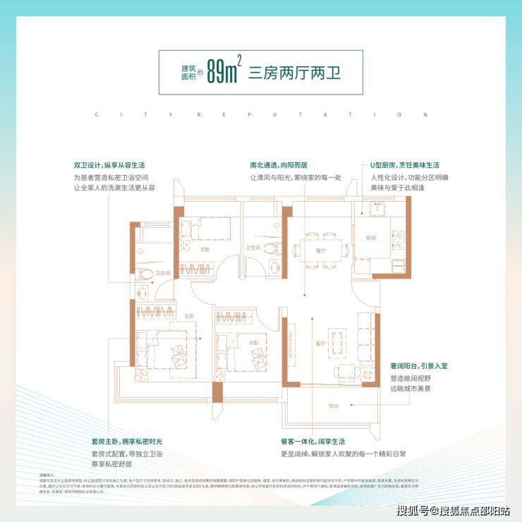 全南向设计,采光通透,宽幕的景观阳台,近揽诗意美景;与阔绰双厅无缝相连,让清风与阳光在室内流动自如,赋予生活更高品质的享受;臻奢三房设计,双卫加持,三代同堂从容不迫,高性价比的不二之选。