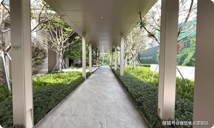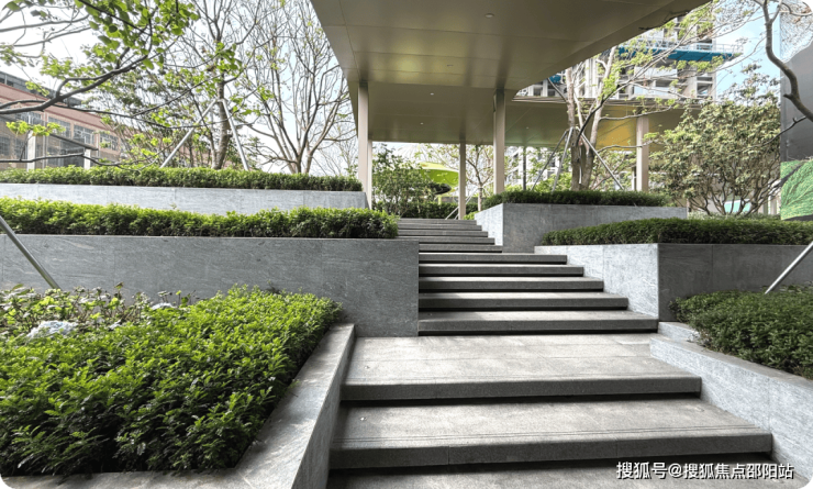 ●公区&花园所见皆为名贵植被、石材铺装、干挂岩板、铝板覆盖件,部分区域还应用了拼花、拼色、造型工艺,能明显感觉它的越级品质。