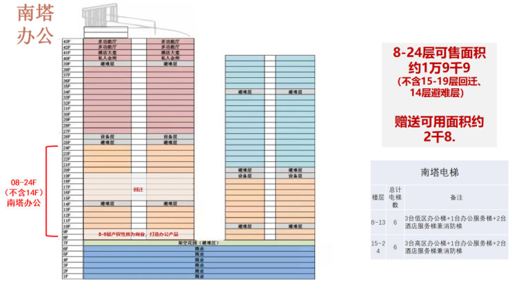 🌇【项目基础信息】大中华环球金融中心甲级写字楼【开发商】大中华国际集团有限公司【项目总占地】约10087.08㎡【项目总建面】约174892.13㎡【车位数】645个【物业管理费】暂定32元/平/月(含空调费)【梯户】日立电梯9台电梯(3台低区、3台高区、1台服务梯、2台消防梯)【南塔写字楼层数】10F-24F【南塔写字楼层高】4.2米【空调】中央空调【产权单位】单层10-11个,共83套(不含酒店)【在售面积楼层跟面积】办公8-24F,共计27017.32平)【产权面积段】约98-473㎡【主流面积段】约154-314㎡【大堂高度及面积】3层挑高约10米,建面约300㎡【标准层面积】(8-43楼):约:1748-2168㎡【通道宽】约2m【实用率】约62%【交楼时间】现楼【配套】甲级写字楼、万豪酒店、高端服务式公寓、高端商业【地铁交通】1号线罗湖站地铁直连,9号线人民南站在旁,17号线规划中【空中交通】写字楼设置直升机停机坪