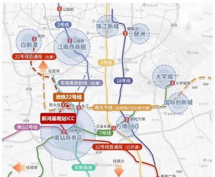 4地铁(广州首个四地铁换乘站)+3有轨+4快速干路,轻松实现10分钟直达万博CBD、25分钟直达琶洲/珠江新城CBD,一站式覆盖广州高净值人群。南站连续多年蝉联全国火车站年客流量第一,发客量达1.88亿人次,享12条轨道交通,4高铁+4城际+4地铁无缝链接大湾区及国内9省,中转接驳东南亚10国,尤其通过广深港高铁可47分钟直达香港西九龙ICC,实现互联互通。