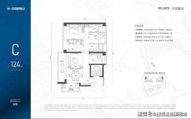 124㎡的3+1房2厅2卫,1栋02/2栋04户型,电梯入户送独立公区,设计的是竖厅格局,LDKB一体化设计,动静分区,主卧套间设计,还有一个多功能间可以做书房,U型厨房,公卫三段式分离,得房率:72.07%(不含赠送),西南朝向。