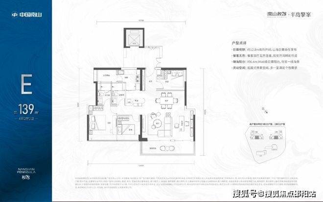 139㎡的4房2厅2卫,1栋03/2栋02高区户型,电梯入户送独立公区,设计的是竖厅类双龙抱珠格局,四开间朝南,主卧大套间设计,有1个多功能间可以做书房,6.4米长观景大阳台,L型厨房带1个生活阳台,卫生间干湿分离,得房率:72.07%(不含赠送),西南朝向。