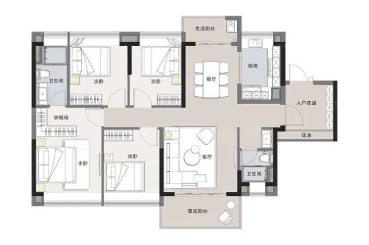 由于住宅楼不多,小区的绿化率也比较高,未来的居住环境应该是比较舒适的。