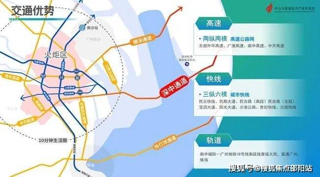 作为中山市各区域中GDP最高的之一,中山火炬高新区周边环绕着南沙、前海、横琴三大自贸片区,以及粤港澳大湾区五大机场。已经通车的港珠澳大桥和即将通车的深中通道就在家门口,中山最重要的高铁、轻轨以及规划的地铁枢纽站就在辖区内,中山港客货运口岸也在辖区内。空港海陆综合交通联运全部完备,全球各地快速抵达。
