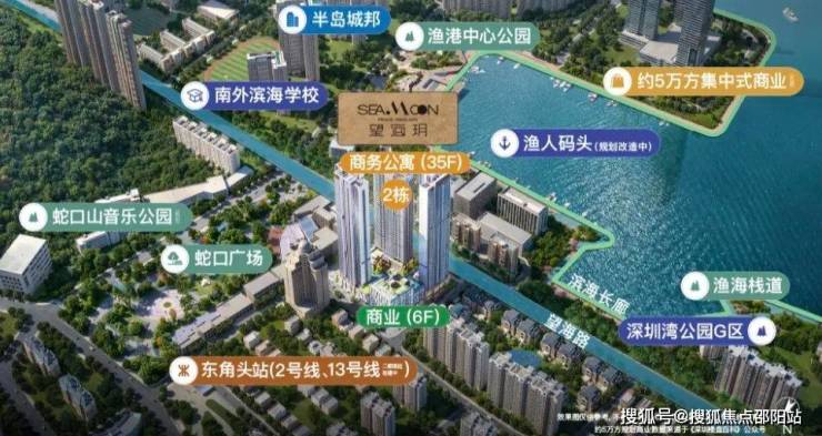 招商望海玥招商望海玥家园位居南山蛇口半岛,项目位于望海路和湾厦路交汇处,蓝漪花园以东、蛇口老街以南,毗邻蛇口广场,与地铁2号线及13号线(建设中)东角头站相距约200米