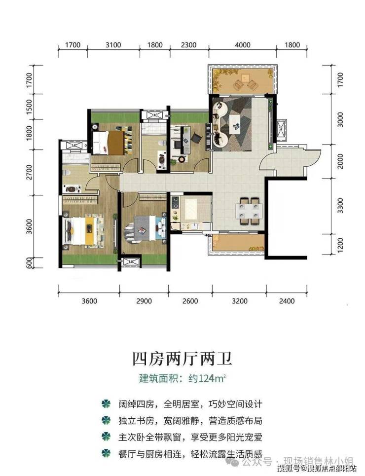 [户型]:2梯4户,3房/4房+入户花园,全部双阳台,房间全部有飘窗赠送