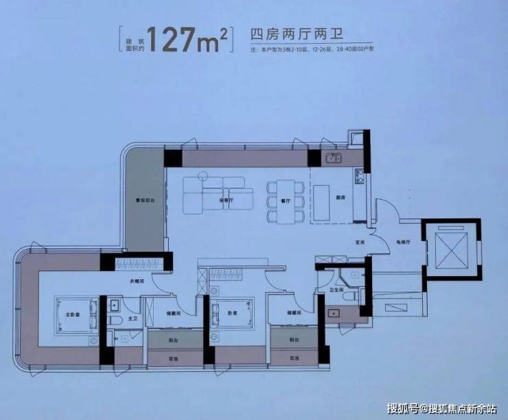 总规划857户,其中可售商品房497套,保障房360套,2-10楼是低区4梯5户,13楼以上是高区4梯4户,其中127平以上户型专梯入户设计,地下室有4层,规划780个车位,车位比约1:0.91。
