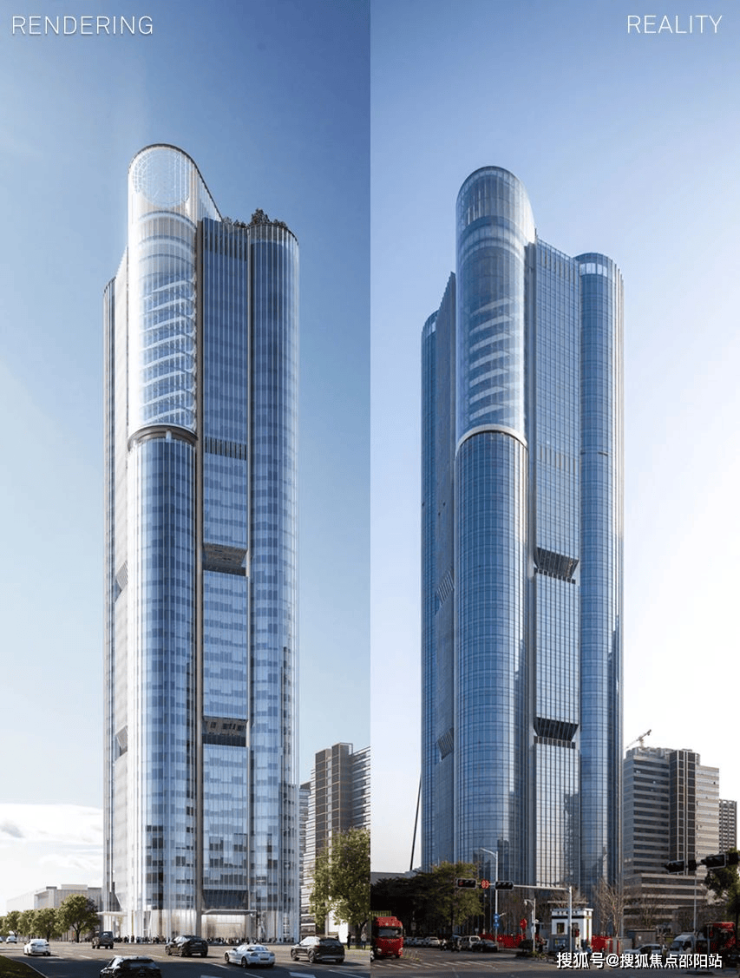 建筑群从中提取筒仓意象,错落的天际线间,高达188米的雪花啤酒总部大厦尤为醒目,形体呼应啤酒罐体特征,通过三个体块组合而成,将大弧度曲线与平直线条巧妙融合。