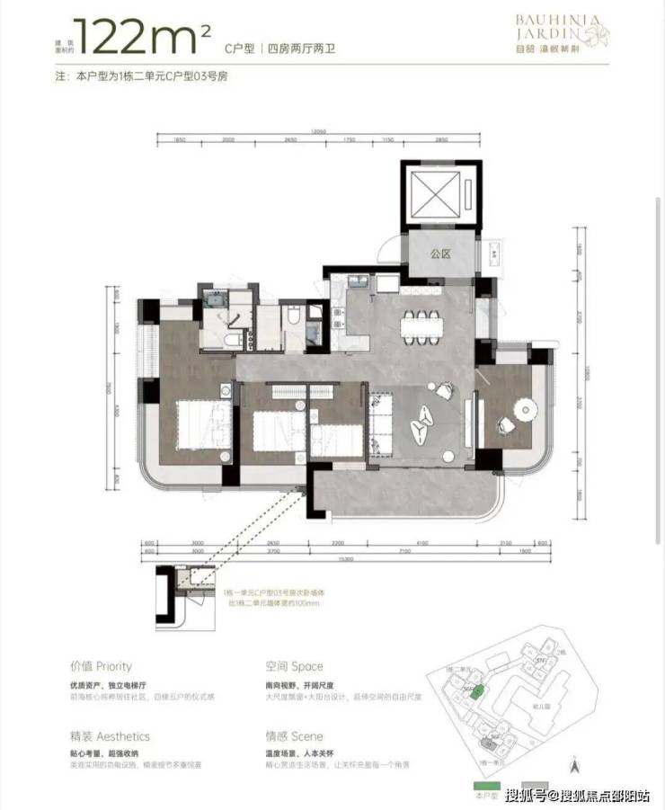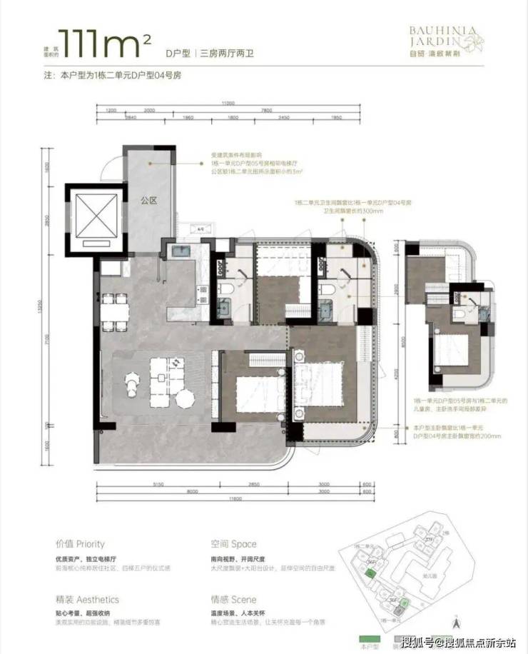 户型:新规设计、高使用率,规划主力为3-4房产品。
