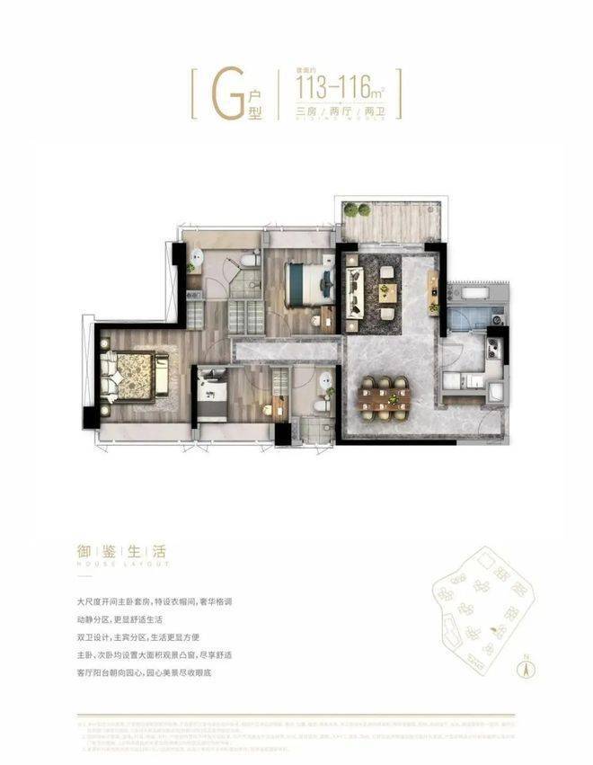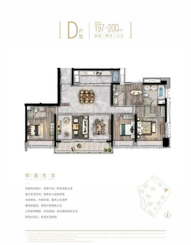 建面约103-200㎡宽境名邸,室内空间尺度阔绰,套房级主人空间,超宽采光观景面,饱览一城光景,传承世代家族信仰。