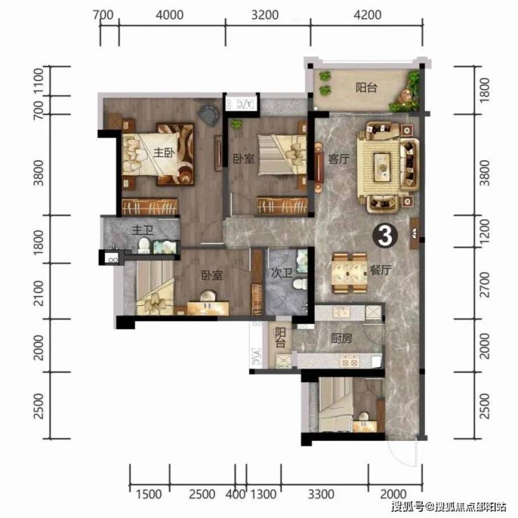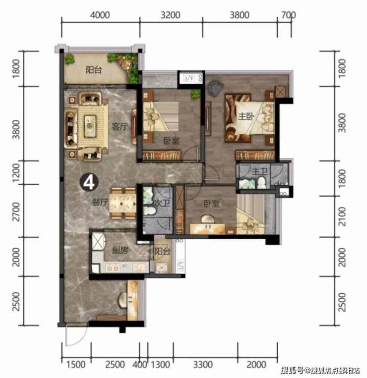 ▲ 04单位户型 117㎡ | 3+1房两厅两卫双阳台