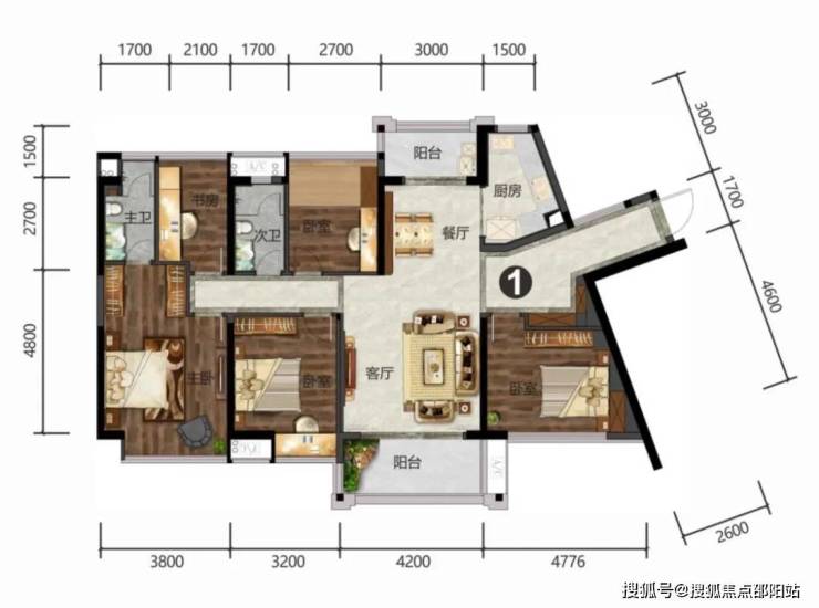 ▲ 01单位户型 127㎡ | 4+1房两厅两卫双阳台