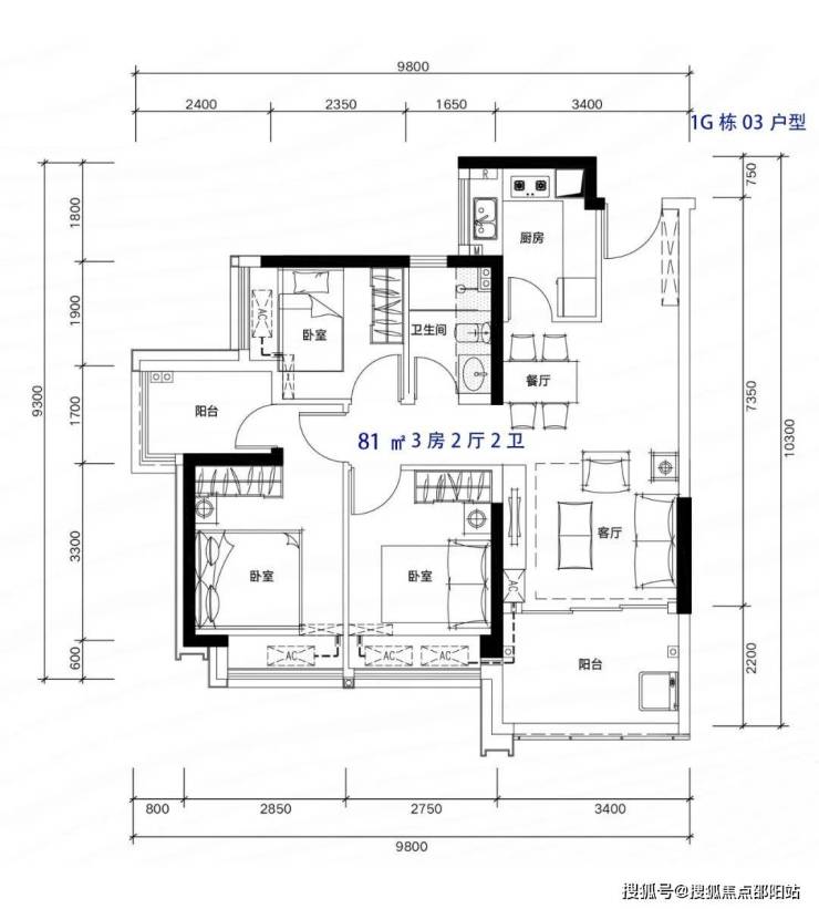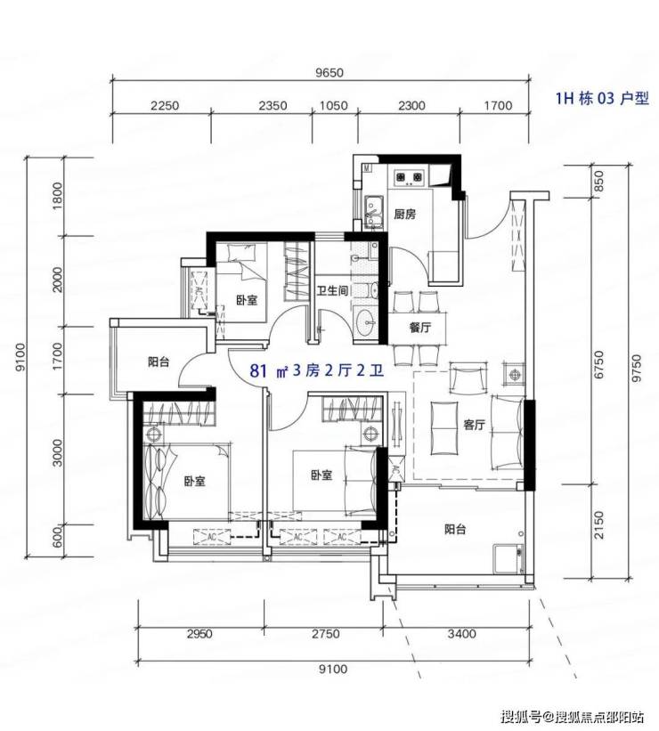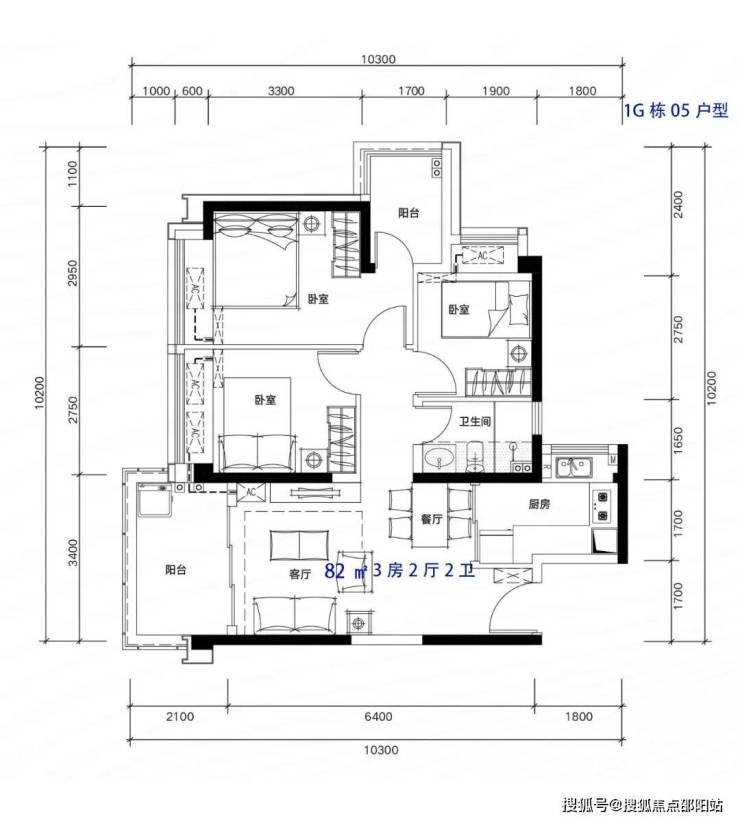 81-82m²3房2厅2卫,有竖厅和南北通户型,客厅开间3.3-3.4米,都有阳台改主卫以及增加客厅进深改造,赠送后得房率在92%左右。