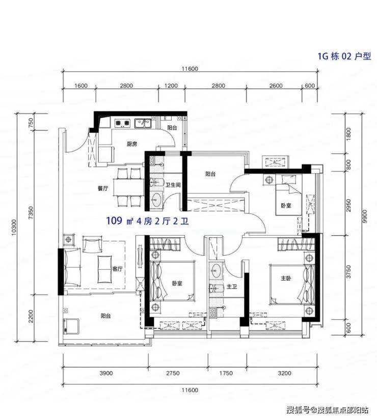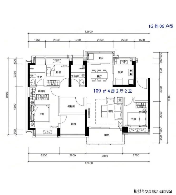 109m²4房2厅2卫,有竖厅和南北通户型,双阳台设计,客厅开间3.9米,都有阳台改卧室以及增加客厅进深改造,赠送后得房率在93-95%左右。