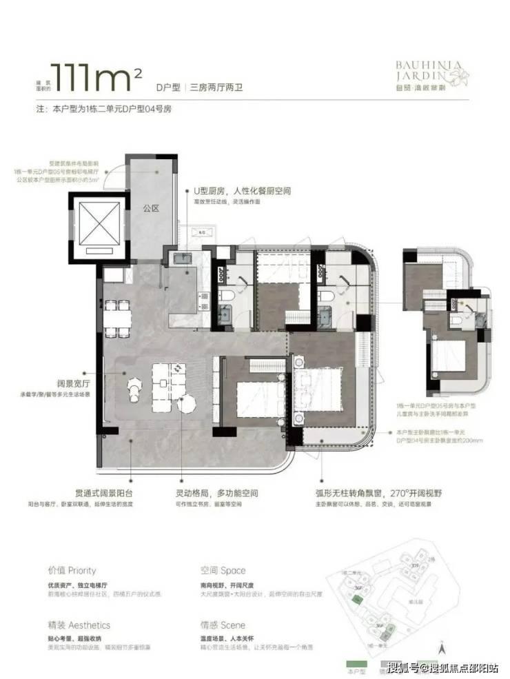 • 270°弧形无柱大尺度飘窗、大宽厅、大阳台,带来更多使用空间。