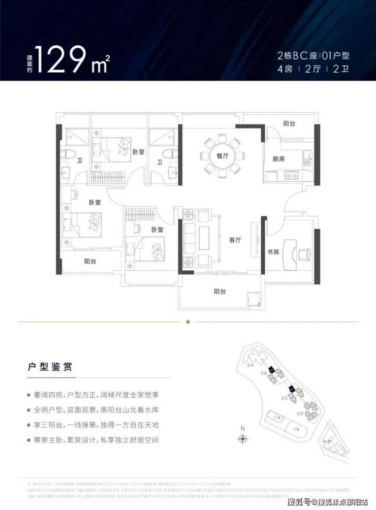 建面约79-129㎡3-4房户型,南北通透,3房3.5~3.7m,4房3.8~4.2m,罕见阔绰开间,客厅、厨房、卧室三阳台多飘窗,超高使用率。