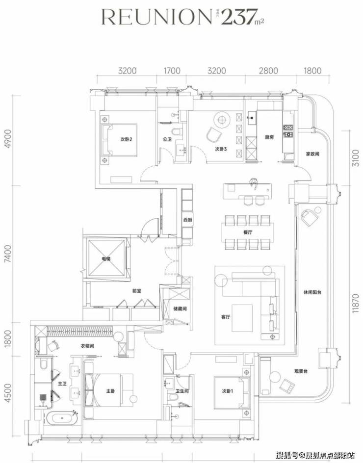 项目共规划 4 栋住宅 + 1 栋幼儿园,合计261套,首推 1 栋约42套 197-235㎡四房大平层住宅,起步就是改善终局户型。户型图首次曝光。