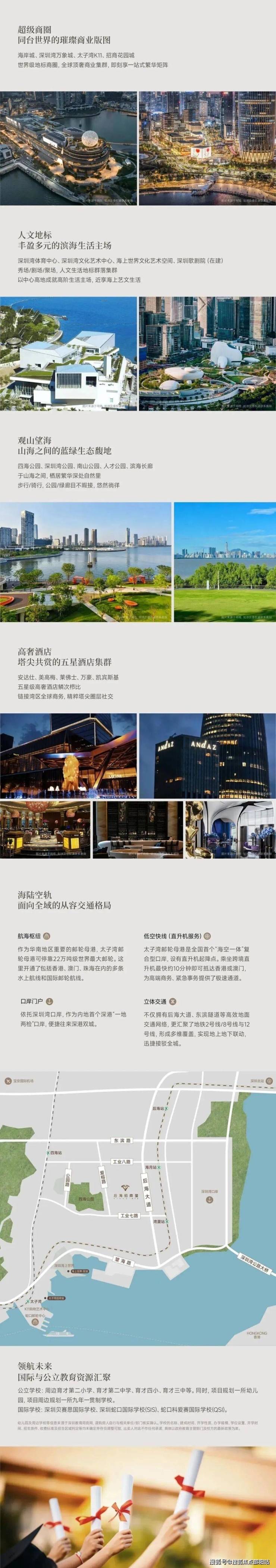 东侧2公里达人才公园、深圳湾海滨公园,深圳歌剧院等,尽享城市级配套;西侧2公里达大南山公园、荔林公园、海上世界等,山海景观资源丰富。