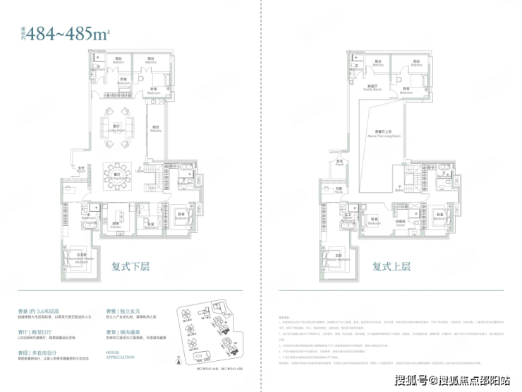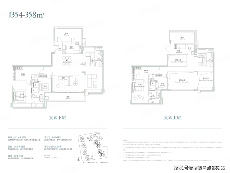 354-358㎡ 和 484-485㎡ 户型为顶复结构,分别位于2栋1单元和2栋2单元。这些超大户型空间极为宽敞,功能分区明确,堪称“空中豪宅”,不仅能在室内骑自行车,甚至看汽车都没问题。
