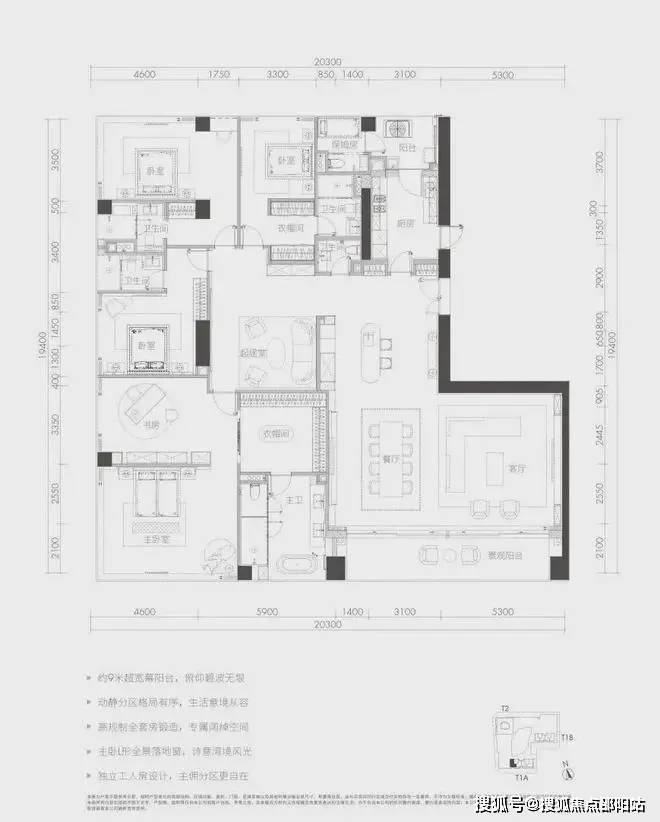 面积:户型多样,包括230-280㎡3房3卫、300-380㎡4+1房5卫、576㎡4+1房6卫、600-700㎡6-7房7卫等