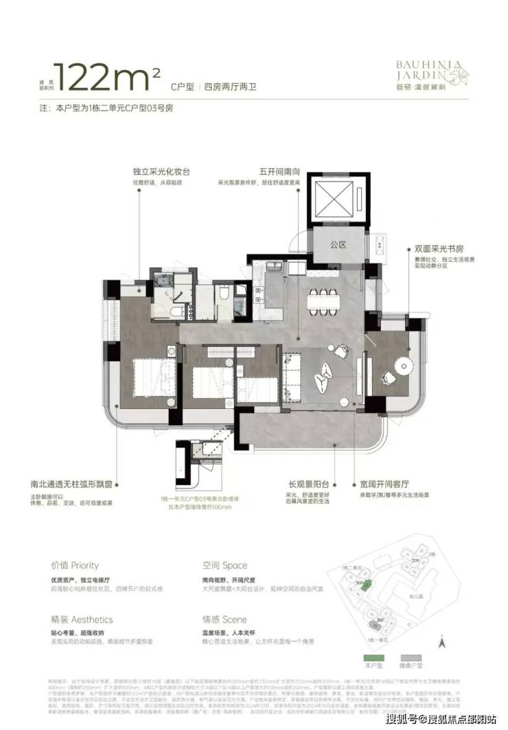 超高得房率: 纯住宅用地设计极致,独立电梯厅、横厅大阳台等使实用面积远超市场普遍80%的水平(100平建面≈87-97平使用)。