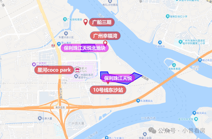 3,白鹅潭滨江带成型,将形成连片的高端居住区。项目属于国际健康港板块,沿江而生的广州幸福湾、广船,都是清一色的豪宅盘,均价7-10万+/平。对岸是海珠创新湾,也是海珠的新晋富人区,豪宅带已经成型。