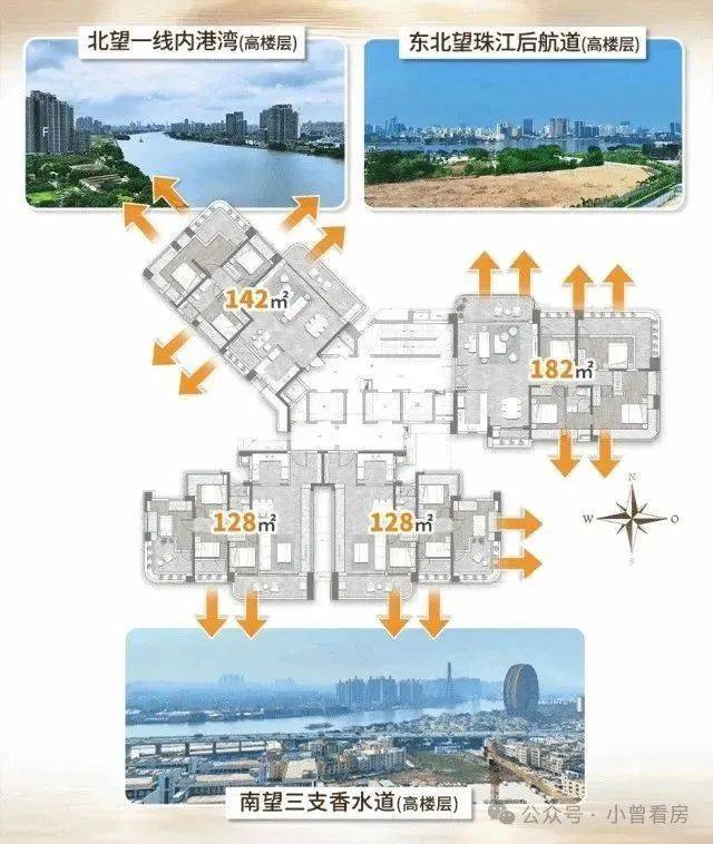 其中A1栋17层高,东面看江,北面是邮轮港口,景观极佳。