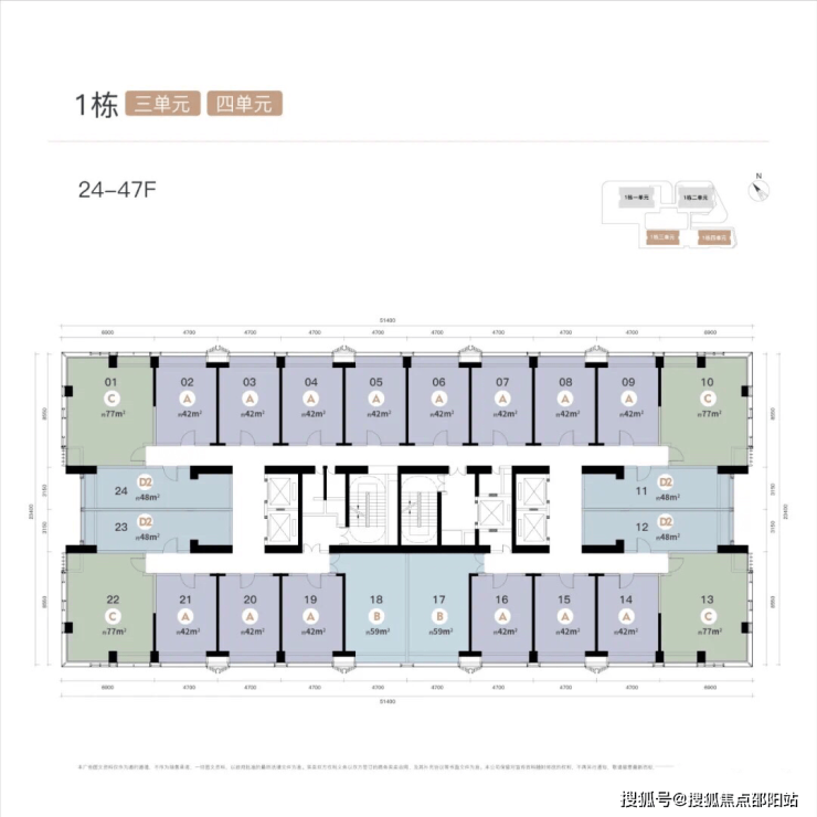 楼层:1、2单元43层,3、4单元48层