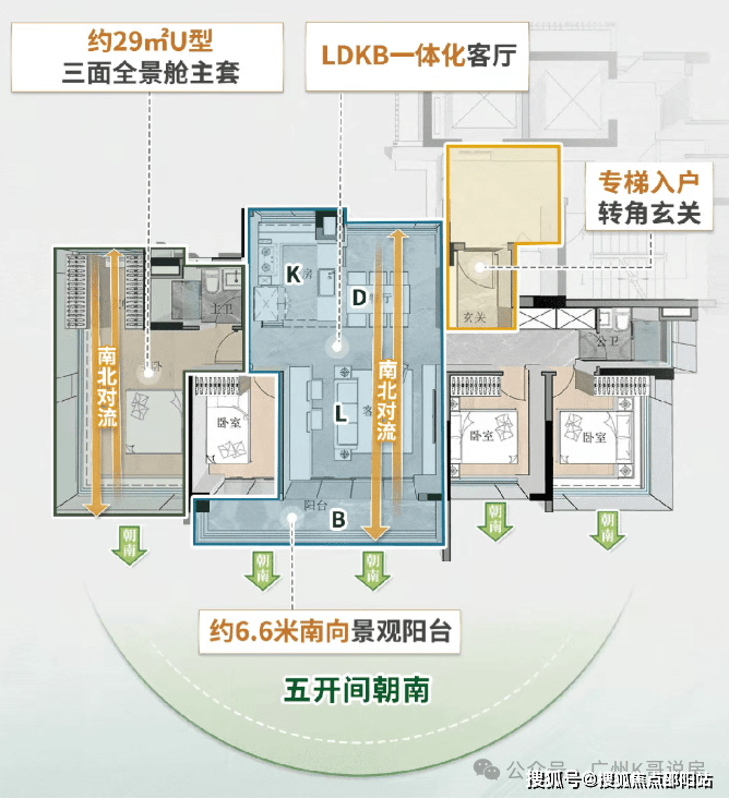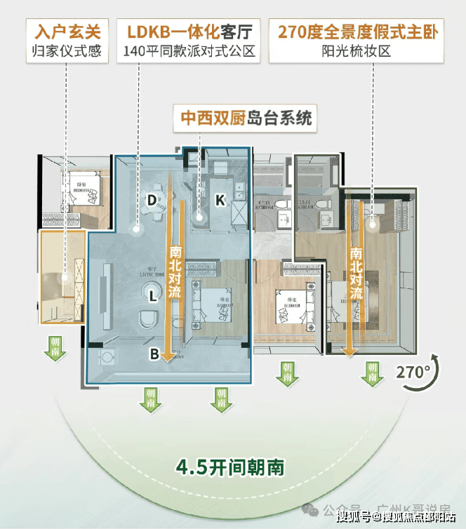 这户型的过人之处,我愿称之为“通透尺度天花板”,主要体现在两点:一是超强对流能力,二是豪宅级空间尺度。