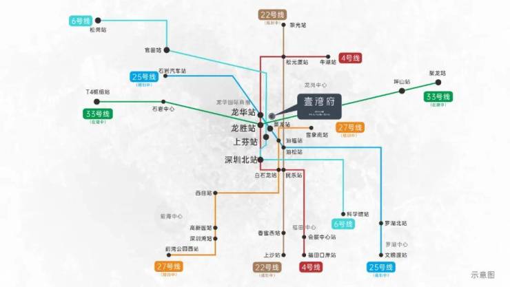 项目距离4号地铁线“龙华站”约700米,深大城际“民治北站”站约2.3公里,4站到深圳北站,5站到南山,8站到西丽枢纽。